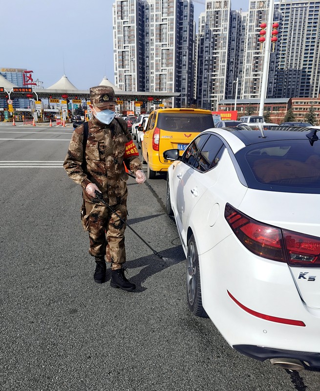 這一天,他對(duì)2316輛進(jìn)入西安繞城高新出入口的車(chē)輛進(jìn)行消毒防疫。