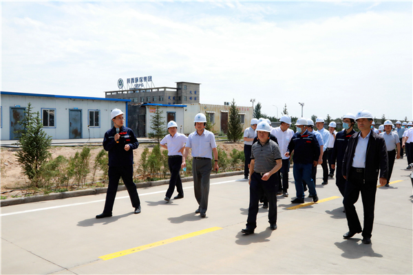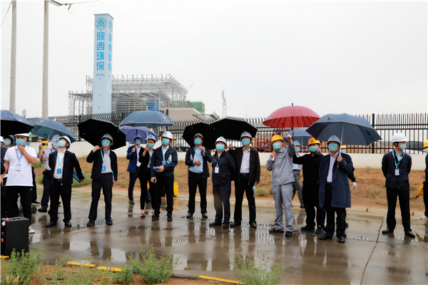 陜西環保集團復工復產促增長項目觀摩會議與會人員走進大秦國源三秦環保秦邦園區在榆項目