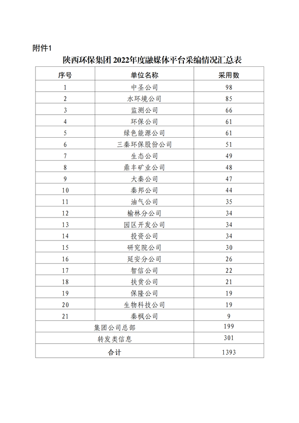 為加強集團公司門戶網站、微信公眾號、新浪微博、視頻號等融媒體平臺的稿件采編工作,鼓勵廣大通訊員圍繞企業中心工作撰寫出高質量的稿件,發揮優秀稿件的示范作用,為集團高質量發展鼓與呼,按照集團公司《關于建立政務信息采用情況通報和優秀稿件評選制度的通知》(陜環司函(2021〕31號)文件要求,現將2022年度集團公司融媒體平臺稿件采用及2022年四季度優秀稿件評選情況通報如下: