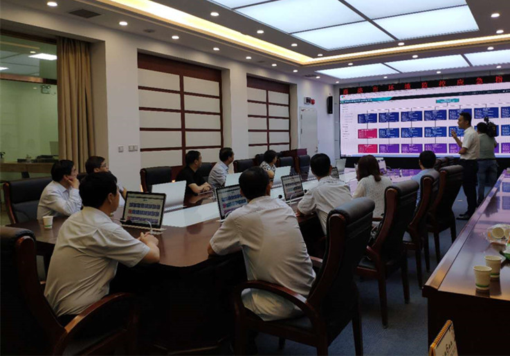 在商洛市生態(tài)環(huán)境局一層大廳,劉福明向陳俊簡要介紹了智信公司承建的環(huán)境監(jiān)控應(yīng)急指揮中心系統(tǒng)的建設(shè)運(yùn)行情況,現(xiàn)場演示、匯報(bào)了系統(tǒng)相關(guān)功能。